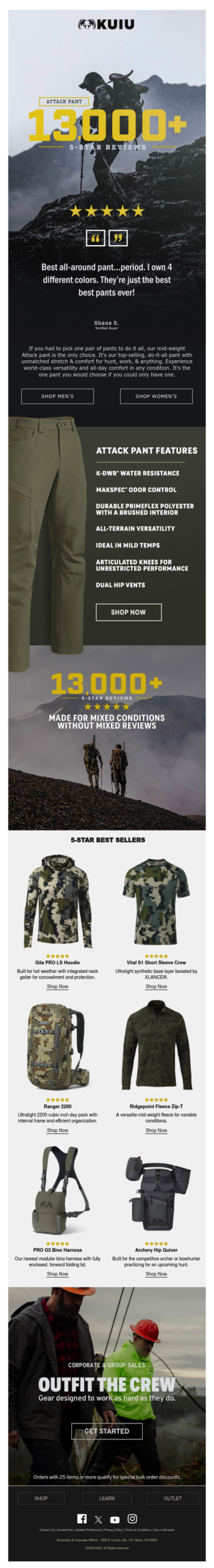 Subject Line: Attack Pant – 13,000+ 5-Star Reviews…Another Milestone Achieved