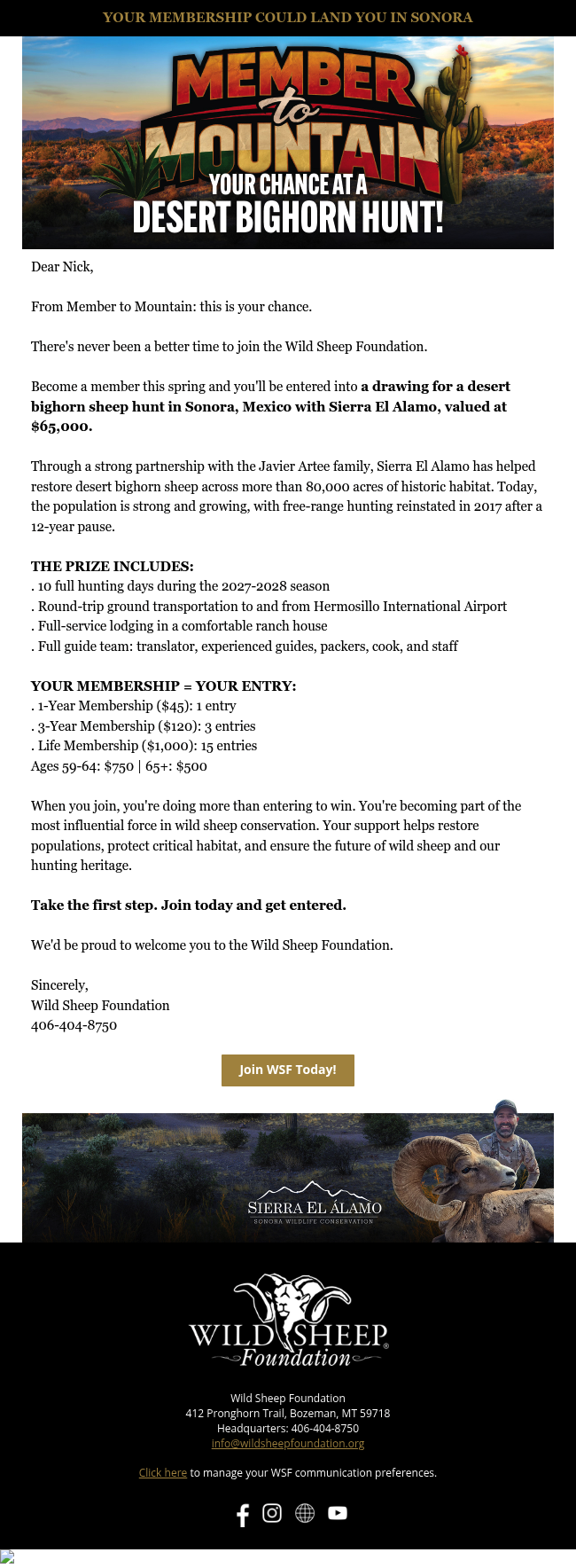 Subject Line: From Member to Mountain: Your Chance at a Desert Bighorn