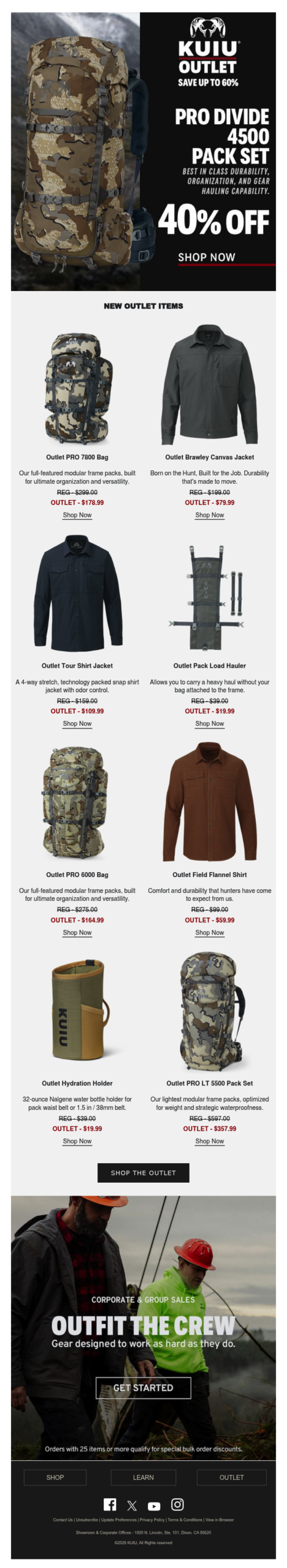 Subject Line: New Items Added to Outlet – Featuring PRO & PRO LT Pack Sets